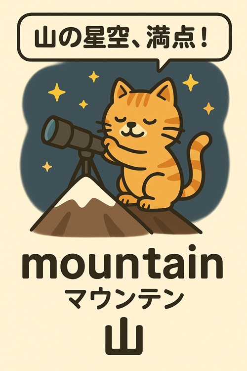 例:many mountains, two mountains, in the mountains(山間部で)、the Rocky Mountains(ロッキー山脈)